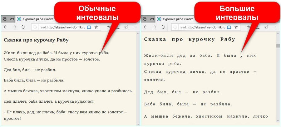 Большие, нежели обычно, промежутки между буквами, словами и строками создают эффект разреженности, чем упрощают восприятие и понимание прочитанного.