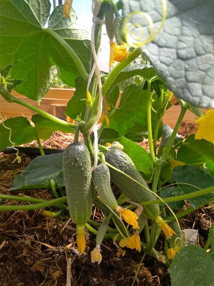 1. При посеве семян или при высаживании рассады в грунт почва должна быть прогретой до 13-14°С. 2. Выращивать огурцы в северных районах однозначно лучше через рассаду, это дает преимущество в 2-3 недели. Во время посадки растения должны иметь 4-5 настоящих листьев. 3. Когда появится 4-5 настоящих листьев можно провести подкормку. До цветения огурцу необходим фосфор, содержится в рыбе. При посадке в лунку добавлять небольшую рыку, или голову крупной рыбы. Можно подкормить травяным настоем. 4. Полив. Огурцы любят влагу - до цветения лучше поливать утром, во время цветения и плодоношения вечером. Идеально теплой водой (25-30 градусов), не под корень растения, а рядом. В жаркую погоду лучше увеличить полив, иначе цветки могут осыпаться. Мы мульчируем толстым слоем скошенной скошенной травы, которая три дня находилась под пленкой - объем травы становиться меньше, происходят процессы ферментации. И поливать по траве удобнее - корни огурца не оголяются. 5. Во время цветения и плодоношения тр