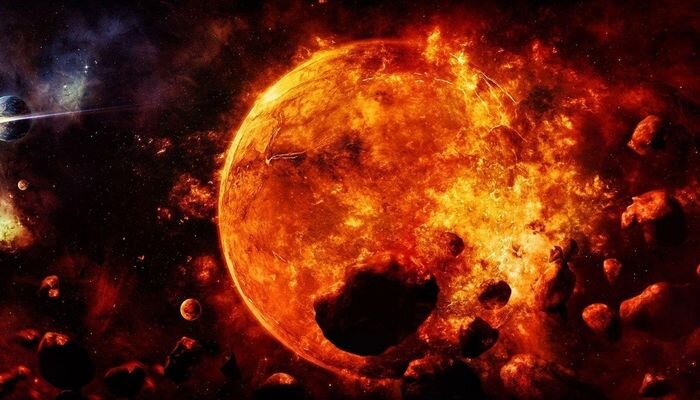 - Гибель от солнца предсказана на очень далекое будущее. Когда-нибудь через тысячи лет Солнце увеличится в размерах, превратиться в красный гигант и уничтожит планету.
