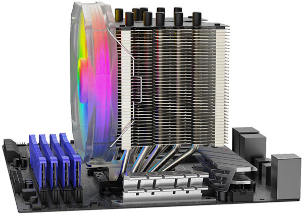 Максимальная скорость нового вентилятора составляет 1400 об/мин, что, по словам производителя, обеспечивает такую же высокую производительность, как и у 140-миллиметрового Sigma Pro. Характерный радиатор Fortisa 3 Evo ARGB покрыт слоем никеля, что еще больше улучшает визуальные аспекты. Твердотельный радиатор обеспечивает большую поверхность для отвода тепла, его асимметричная форма не будет мешать работе модулям оперативной памяти.
