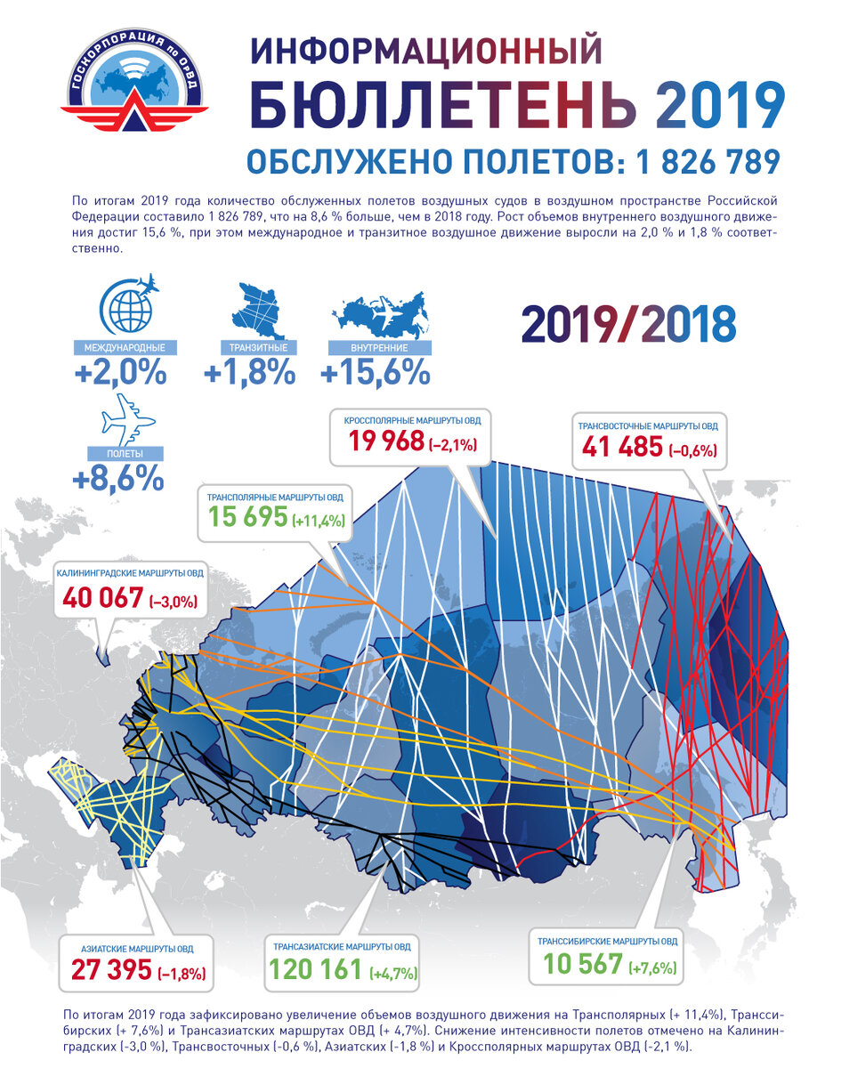 Предлагаем ознакомиться с информацией о ключевых показателях деятельности ФГУП «Госкорпорация по ОрВД» по итогам 2019 года.