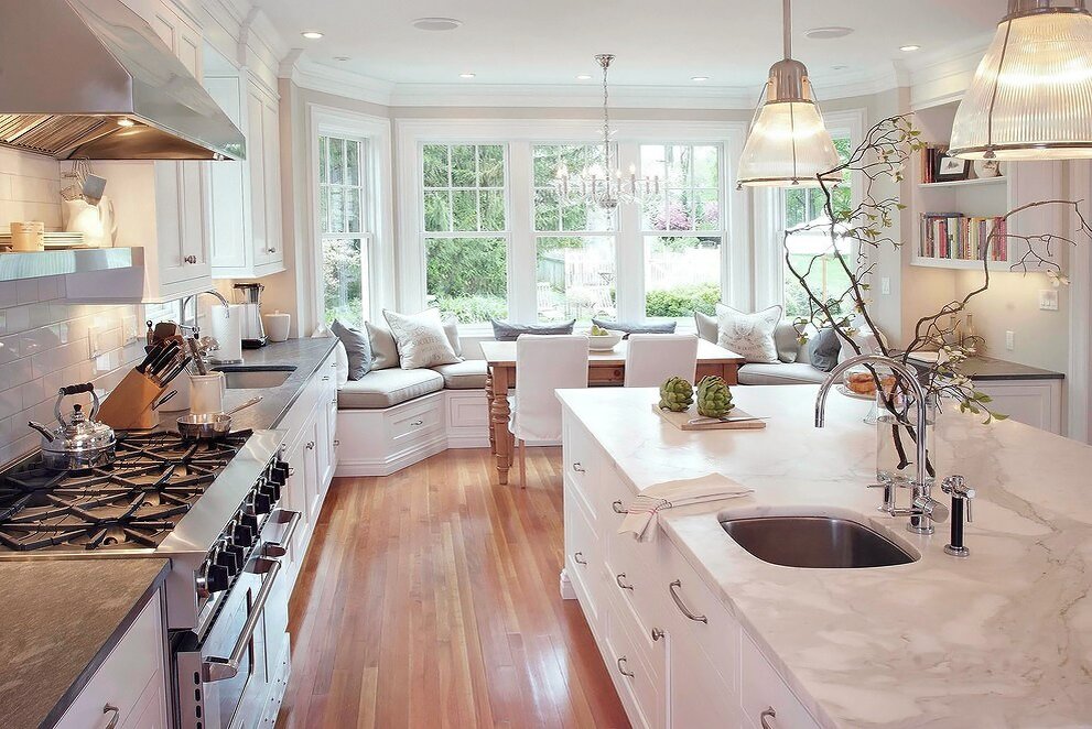 О кухонных уголках мы наслышаны. В своё время г-образный крохотный диванчик на кухне был чуть ли не главной интерьерной мечтой многих хозяек. Ведь с появлением этого предмета мебели можно было отказаться от половины табуретов, попрощаться с громоздкими и неудобными стульями и наконец-то разместиться всем семейством на кухне. Сегодня кухонные уголки не потеряли популярности, однако всё чаще возникают сомнения — а стоит ли? Сегодня мы постараемся ответить на этот вопрос. Начнём с главного — взвешивания за и против. Плюсы кухонных уголков 1. С появлением кухонного уголка мест для сидения на кухне прибавится как минимум вдвое. Не забывайте, что вместе с диваном всё так же можно использовать табуреты и стулья. А значит, отныне прямо на кухне можно трапезничать не только всей семьёй, но и в небольшой компании друзей. 2. В последнее время понятие «кухонного уголка» расширилось до набора из нескольких диванчиков, которые в зависимости от ситуации можно разместить в любой последовательност