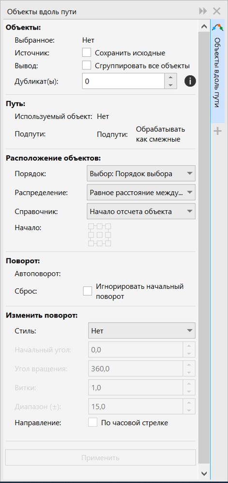 В разделе Расположение объектов можно выбрать способ распределения объектов по пути.
