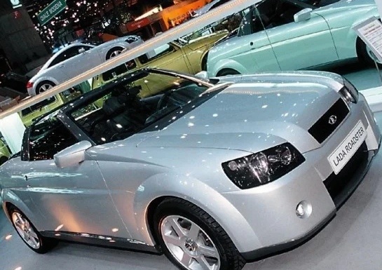 Спортивный родстер. Ещё один случай вовремя не задушенного энтузиазма молодой дизайнерской поросли. Наверное, один из ярчайших. Автор этого проекта — вазовский дизайнер Николай Нужный, который в конце 1990-х прошёл стажировку в знаменитом итальянском кузовном ателье Sbarro и в полной мере реализовал полученные навыки и потенциал на разработке Lada Roadster. Машину, которая слегка напоминала Audi TT (обратите внимание на фото ниже, там в кадре оба автомобиля) и выглядела просто нереально круто для ВАЗа, показали на Московском автосалоне в 2000 году. Изюминкой проекта был принцип складывания крыши. Он был оригинален, рационален и прост в освоении: верх из прозрачного пластика, имеющий L-образный профиль, целиком укладывался с помощью сервоприводов на крышку багажника, сохраняя его объём. В качестве платформы родстера планировали использовать «Калину», до появления которой в серийном производстве на тот момент было ещё 4 года. Наиболее широко известен по публикациям серебристый экземпляр,