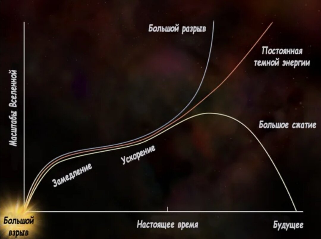 Другой вариант – Большой Разрыв, то есть распад всего, что уже было создано в результате Большого Взрыва. Это произойдет при ускорении расширения Вселенной.