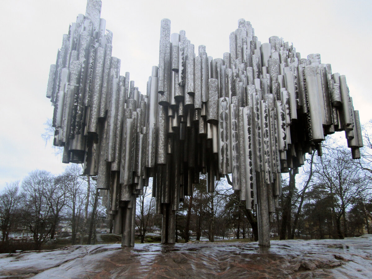 Все, кто побывал в Хельсинки, обратили внимание на интеграцию современной архитектуры с классическими памятниками. Особенно ярко это выражено в центре города, где в историческом центре сохранились постройки XVIII-XIX века. Одним из ярких примеров современных памятников в Хельсинки сегодня смело можно назвать памятник Яну Сибелиусу - известному финскому композитору. Открыли его через 10 лет после смерти композитора, в 1967 году. Издалека кажется, что какой-то космический корабль приземлился в парке. Но подойдя ближе, сразу понимаешь, что памятник напоминает трубы органа. Вокруг достаточно тихо. Памятник Сибелиусу - один из самых посещаемых памятников в Хельсинки. В феврале с утра почти никого не было около памятника, 1-2 туриста и несколько местных жителей выгуливали собак. Летом, говорят, тут все вокруг облеплено туристами. Памятник в свободном доступе, т.е. прийти к нему можно в любое время. Вечером включается подсветка. Из центра до него можно добраться на 10 трамвае, если не ош