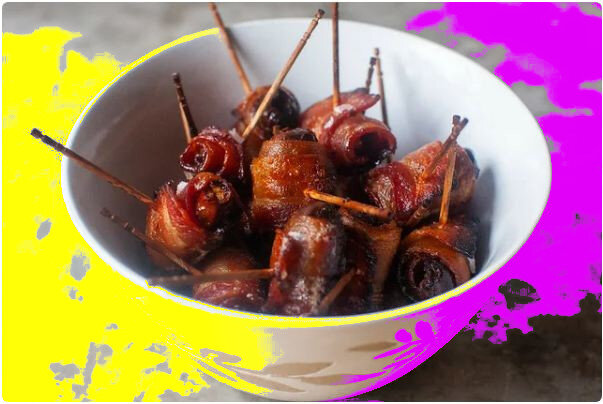 На первый взгляд кажется, что в составе блюда присутствуют совершенно не сочетаемые продукты: бекон, мед и финики. Однако, их несочетаемость только кажущаяся. Мясо прекрасно сочетается с финиками, а мед образует вкуснейшую хрустящую корочку. В общем, попробуем соединить эти #продукты воедино. Как видите, нам понадобится всего три основных ингредиента и от силы 15-20 минут времени. Что нам потребуется Приступим Разогрейте духовку до 220 градусов по Цельсию. Оберните бекон вокруг каждого финика (Без косточки), закрепив его зубочисткой и положив на противень с фольгой (Так не придется долго мыть посуду.) Смешайте яблочный уксус, мед и перец в маленькой миске. Кистью или ложкой на каждый бекон положите глазурь. Вы также можете ненадолго опустить кусочки бекона в миску с глазурью, чтобы ускорить процесс. Посыпаем морской солью. Запекаем в духовке от 15 до 35 минут, от времени зависит вкус и текстура (от сочного и румяного до хрустящего и темно-коричневого). Проверяйте блюдо каждые 5 ми