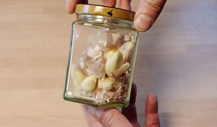 Ни для кого не секрет, что почистить чеснок бывает весьма проблематично, особенно, когда зубчики настолько мелкие, что в пору и вовсе отказаться от этой затеи. Но прежде чем начать психовать, бросая начатое, лучше воспользоваться простым, но гениальным советом. Возьмите стеклянную банку (или небольшую кастрюлю с крышкой), сложите в неё чесночные зубочки, закройте крышкой или прикройте плотно ладонью, и хорошенько потрясите. Подобный метод поможет вам достаточно быстро избавиться от большей части столь ненавистной шелухи.