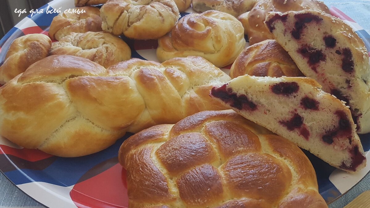 Всех приветствую на своей страничке🤗 Я хоть и увлекаюсь стряпней давно, но и у меня есть проверенные и более часто используемые и простые формы булочек, такие как в виде розочек, улиток и посыпные. Решила показать в этой публикации другие более трудоемкие способы. К этот статье есть короткий видео рецепт. Как заводила тесто описывать не буду, просто скажу, что тесто не на молоке, а на простакваше (скисшем в тепле молоке) и хочу заметить, что даже из такого пористого и более растекаемого теста можно сделать красивую выпечку. Для оформления изделий понадобится 1 яйцо и немного молока для смазывания, также нужен будет сахар, немного корицы и немного кунжута, горсть замороженых ягод, ну или свежих. Полный видео рецепт тут👇👇👇👇 Тесто у меня замечательно поднялось и было очень пористым, прям всё в дырочку))) Тесто я собрала со стенок чаши в комок и подбила прям в ней. Брала порционные кусочки теста и из них делала формы. 1. Прикольная квадратная плетенка. Далается из четырех жгутиков