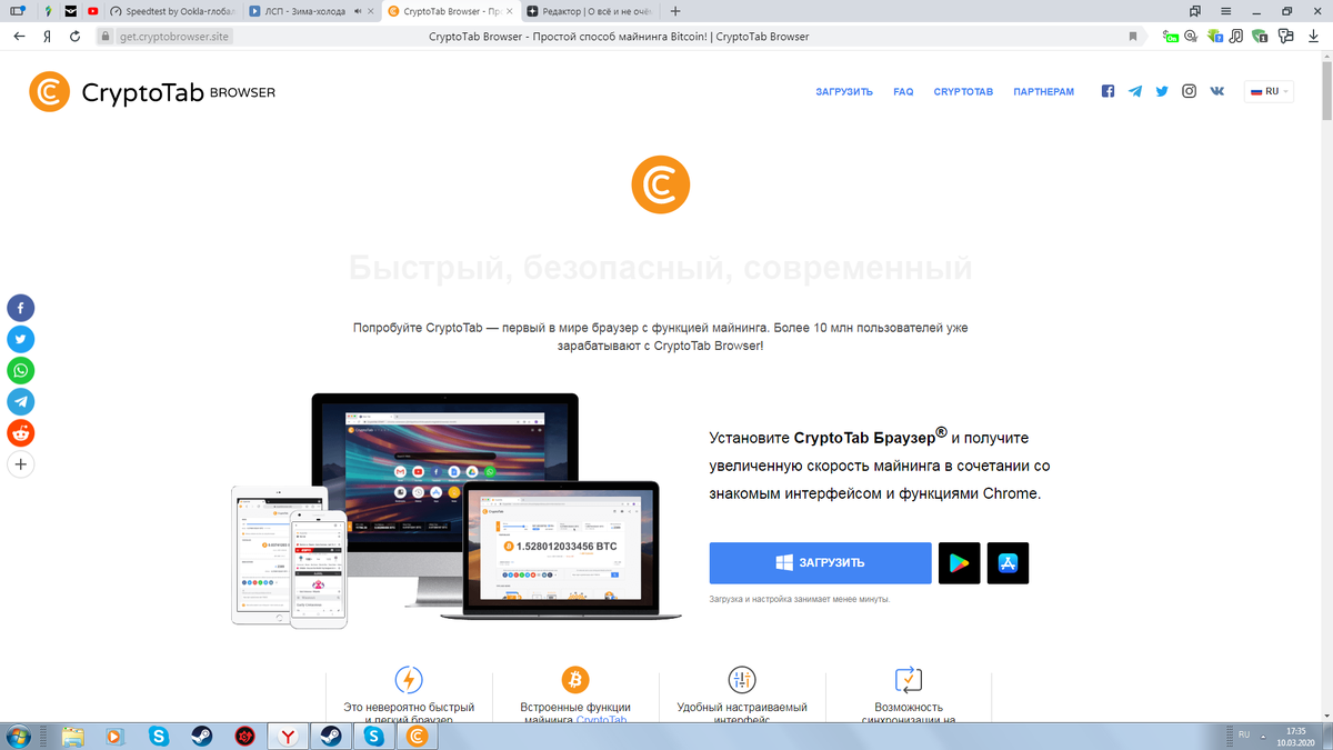 Всем привет сегодня расскажу про очень хороший способ майнинга крипты , всё очень просто переходить по этой https://get.cryptobrowser.site/11627355 ссылке , нажимаем Загрузить . Далее будет скачивания браузера , устанавливаете его , проходите авторизацию через Gool систему , и всё майнинг будет приносить доход , 10 уровневая система рефералов . Всё остальное вывод и тд вы прочитаете на сайте , всем спасибо , зарабатывайте ... Ссылка https://get.cryptobrowser.site/11627355