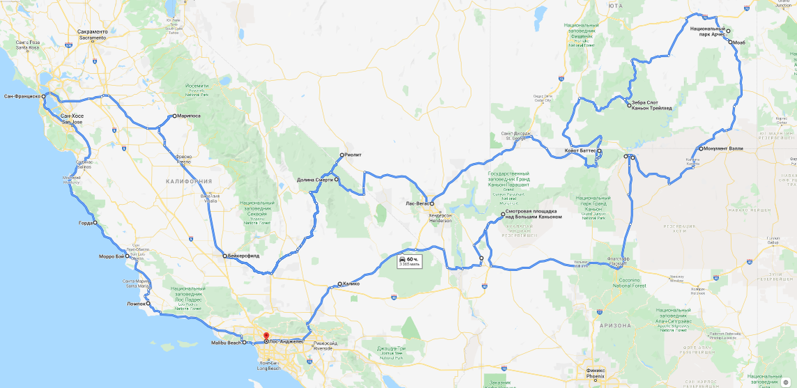 Маршрут с картой и рекомендации для тех, кто путешествует по США самостоятельно впервые