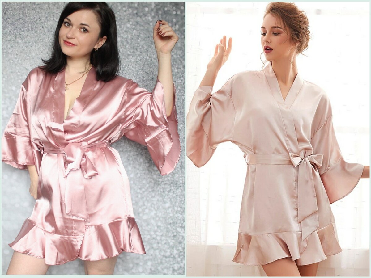 Как часто заказывая товар на Алиэкспресс вы получаете совсем не то, что видите на картинке? У меня такое крайне редко, так как я тщательно выбираю магазин, читаю отзывы и изучаю размерную сетку! А уж если не могу принять решение самостоятельно, то никогда не лишним написать продавцу, чтобы он помог сориентироваться вас с размером! Подписывайтесь, чтобы не пропустить мои обзоры! Я научу находить вас надежные магазины и качественные товары! Все ссылки в обзоре отмечены синим шрифтом! Итак, сегодня речь пойдет об атласном халате нежно розового цвета! На первом фото в коллаже цвет моего халата и халата на модели отличаются, так как это и есть разные цвета) Представлен халат в 4-х цветах. Я выбрала цвет dark pink. Размеры от М до L. На мне размер М, мои параметры 92-75-92. Сел халат вполне себе свободно, согласно размерной сетке размер М подойдет для груди до 110 см. И это действительно так. Места в груди еще предостаточно! Ткань очень приятная, струящаяся. Телу достаточно ко