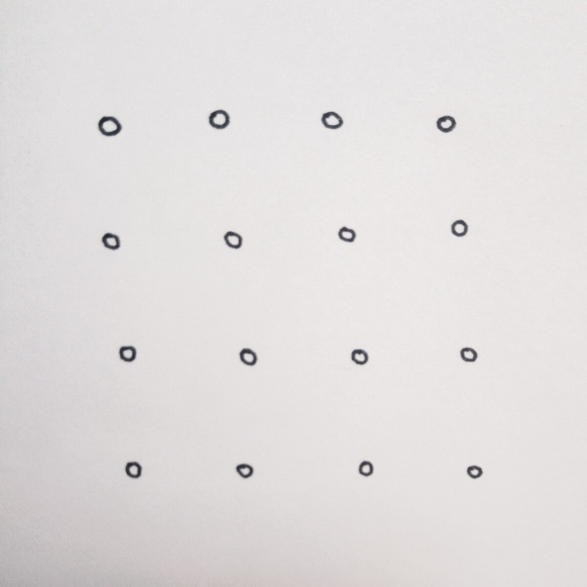 Нужно нарисовать на приблизительно одинаковом расстоянии несколько рядов горошин.