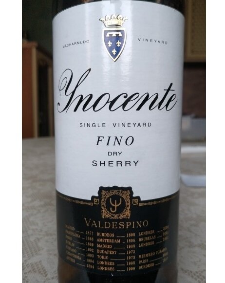 Хотя я люблю херес как класс, не всегда разделяю восторженные мнения других поклонников о нём. Уже доводилось пить испанский херес. который не произвёл на меня впечатления. Сегодня будет высоко оценённый критиками херес, причём сухой. Valdespino Fino Inocente, конечно, из испанской провинции Jeres. Высоко оценённый - это RP 94, Wine&Spirit Magazin 94, Guia Penin 94, WS 92. Правда, надо смотреть, когда какая оценка была поставлена. Правда, метод солера сгладит неудачу одного года при смешивании его с другими в бочках. В общем, крутой херес с такими оценками, и более-менее приемлемой ценой, до 2 тыс руб, когда со скидкой. Цвет не яркий, даже бледноватый, зелёного чая с лимоном и золотым блеском, очень прозрачный, чистый. Как слеза. Аромат яблочный с тонами ржаного теста. Вкус тоже с яблоком, с зелёным яблоком, а также с нотами молодых веточек, дерева, листвы. При этом не насыщенный. Водянистый. И довольно прямой, без игры в бокале. Что любопытно, пустой бокал пах орехами. Любопытно, чт