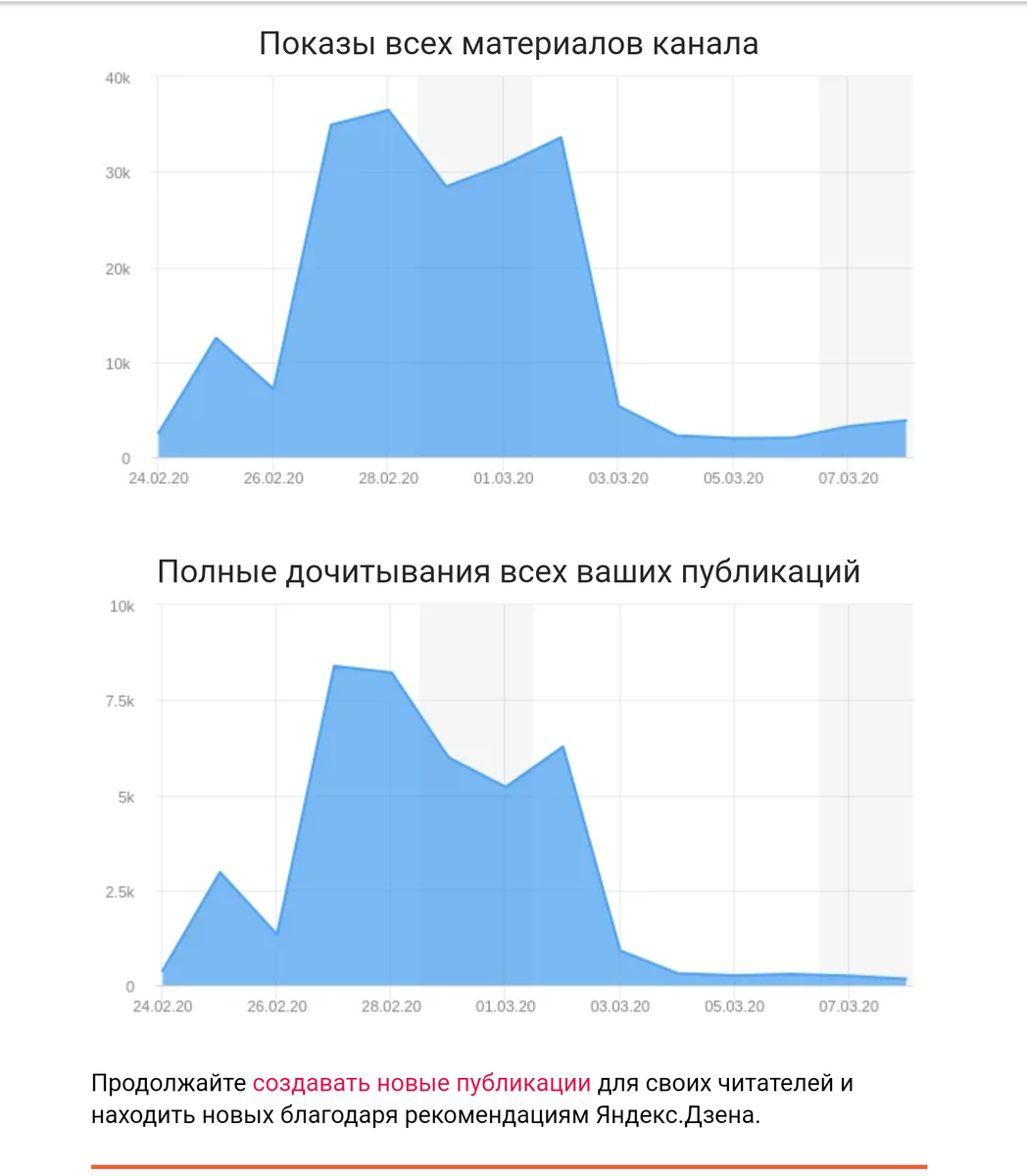 Итак, на графике отчетливо видно, что в конце февраля (ровно месяц, как я регулярно пишу) Дзен дал мне огромное число показов, и я не вижу другого объяснения, для чего, кроме как искусственно вывести меня на монетизацию. И именно в эти дни вдруг появилась такая возможность. Я, воодушевленная, быстренько ее подключила и начала мечтать, как бы на меня с неба свалились деньжата хотя бы на коммуналку. В другое время я бы и связываться не стала, но сейчас приходится экономить на выплату кредита. И в первые дни выпоат казалось, что реально хотя бы на оплату телефонов и интернета набрать. Выплатиои 59 руб, потом 100, потом 126. На этом все закончилось. На графике видно, что 3го марта резко снизили показы. Практически до нуля. Я не поняла в чем дело, может, я что-то нарушила, и написала на обратную связь. Ответа не получила, но показы немного выросли. Просмотры точно следуют за показами. То есть лежат на уровне пола. Монетизация соответствующая - 3 рубля в сутки. Ха-ха-ха. За месяц на морожен