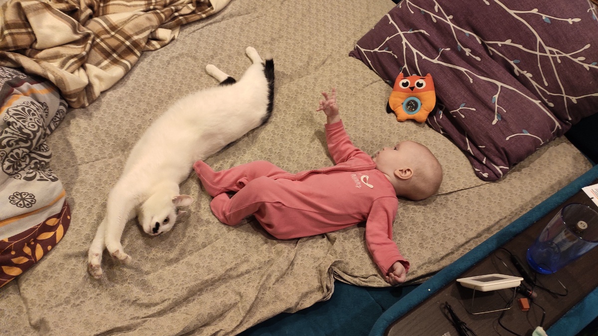 Буся живёт у нас уже больше 3 лет. Впервые я познакомилась с ней, когда муж позвонил с работы и сказал, что к нему прибился маленький ласковый комочек и теперь он хочет её забрать. Я была не против, тем более кошку мы хотели завести уже давно. Единственное, что меня смущало, то что завести я хотела шотландца, а муж принес обычного метиса с улицы. Комочек и правда оказался ласковым, правда до поры до времени. После первой ванной процедуры после улицы, кошку как будто подменили. Она вдруг стала кусаться, царапаться. Всё время бросалась на руки и пыталась отгрызть пальцы. Таким образом, она видимо игралась и пыталась обратить на себя внимание. Думала, что через несколько лет, кошка перерастет и перестанет царапаться, но чуда не произошло. Я очень боялась, что с рождением дочки, кошка начнёт бросаться и на ребенка, поэтому первые пол года держали её подальше от дочки в другой комнате. Уже позже, начали потихоньку их знакомить. Дочка гладила Бусю, но как только пыталась схватить за хвост,