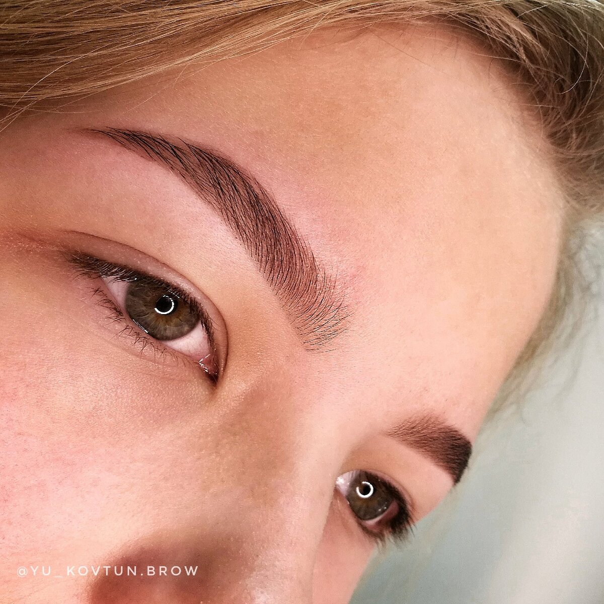Цвет бровей должен быть на 1-2 оттенка светлее, чем корни волос. Только блондинкам рекомендуется подбирать краску на 1-2 тона темнее, чем волосы.