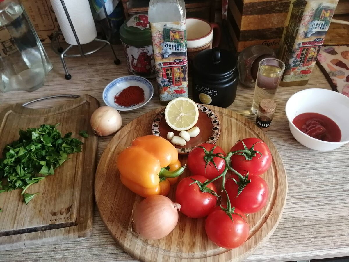 Здравствуйте, люди мои! Сегодня хочется отойти от увлекательной и всегда насущной темы экономного шопинга и окунуться с головой (и вас заодно окунуть) в мир кулинарии, который тоже мне очень близок. Готовлю рыбку. У меня филе трески, но можете взять филе любой белой рыбы. Рецепт очень занятный, рыбка получается настолько вкусной, что иногда за столом случаются небольшие драки из-за нее. Шучу, конечно. Но насчет вкуса – никогда. Итак. Нам понадобится: Филе любой белой рыбы – 1 кг Лимонный сок - 100 г Помидор - 3-4 шт. Болгарский перец - 1 шт. Томатная паста - 2-3 ст.л. Оливковое масло - 3 ст.л. Чеснок - 2-3 шт. Лук – 1 головка (это если крупный, мелких 2) Белое сухое вино - 60 мл Сахар - 1 щеп. Петрушка - 0,5 стак. Паприка - 1 ч. л. Корица - 1 щеп. Черный перец (молотый) - 1 щеп. Соль - 1 щеп. 1. Для начала нужно посолить и поперчить рыбу, затем выложить ее в смазанную оливковым маслом форму, залить соком лимона и убрать на холод примерно на 1 час. От фото рыбьего филе я