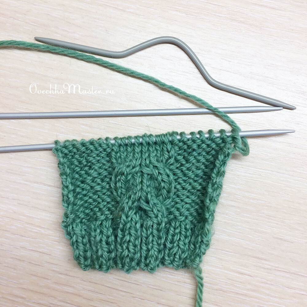 Здесь у меня связаны уже 18 рядов (6 рядов резинки + 12 рядов узора с косами) для наглядности.