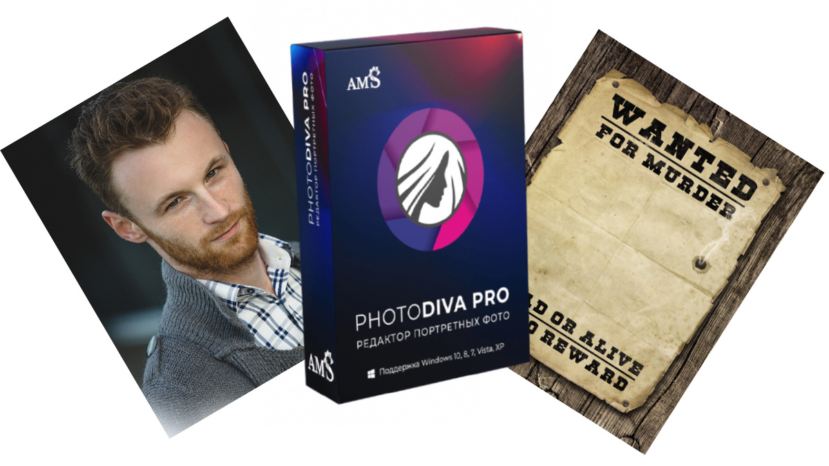 Готовите вечеринку в стиле Дикого Запада или хотите сделать оригинальный подарок другу? В этой статье мы расскажем, как за пару минут превратить обычную фотографию в постер Wanted, или «Разыскивается за вознаграждение» с помощью программы для ретуши портретов PhotoDiva. Для работы вам потребуется следующее. Теперь разберем, какие действия следует совершить, чтобы органично вписать портрет в постер. Шаг 1. Подготовка фотографии В главном окне программы нажмите «Открыть фото». Укажите в папке на компьютере нужный портрет. В идеале лучше выбрать снимок, на котором нет слишком современной одежды и аксессуаров. Сделать постер аутентичнее позволят рубашки, блузки или платье в стиле ретро. Фон снимка не имеет значения — позже мы его уберем. Однако стоит отдать предпочтение портретам с контрастным задним планом, так будет легче его заменить. Вы можете улучшить портрет в разделе «Ретушь»: убрать дефекты кожи, отбелить зубы и т. п. Вам доступны быстрая ретушь одной кнопкой и гибкие ручные настро