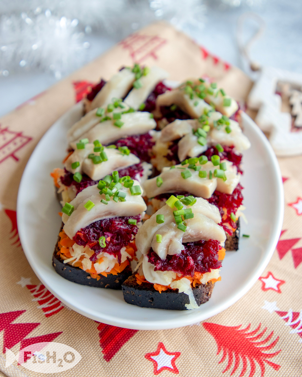 Закусочные тосты «селедка на шубе». На наш взгляд - это прекрасная альтернатива традиционному салату, но готовить быстрее и проще, а выглядят тосты ну очень нарядно. Для приготовления мы использовали пресервы из сельди в масле (есть в нашем ассортименте). Можно использовать и целую слабосоленую сельдь, но тут придётся повозиться с разделкой и косточками. Кто этого не любит, пресервы - замечательная альтернатива, косточки практически отсутствуют, а пряный вкус может пикантно дополнить блюдо. Ингредиенты: Способ приготовления: ПРИЯТНОГО АППЕТИТА! >> FisH2O.ru : Учим разбираться в рыбе, не давать себя обманывать, выбирать и готовить! <<