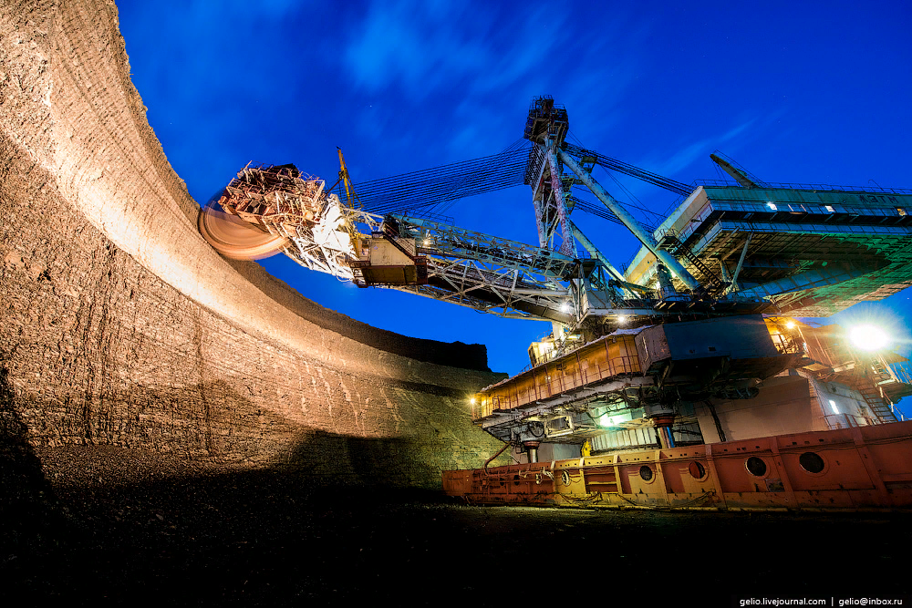 На разрезе «Берёзовский-1» в городе Шарыпово Красноярского края бурый уголь добывают при помощи пары самых крупных в стране экскаваторов роторного типа. ЭРШРД-5250 — это «Экскаватор роторный шагающее-рельсовый добычной». Два десятка ковшей, закреплённых на роторе-«колесе» этой гигантской самоходной машины, способны вынимать до 5250 кубометров угля в час.