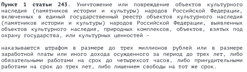 Эти две статьи четко определяют где точно нельзя заниматься копом — на территориях объектов культурного наследия, которые внесены в реестр и охраняются государством.