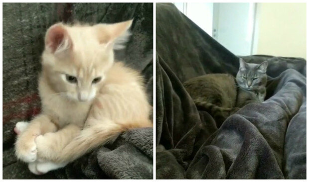 Реакция кота на котенка, которого хозяин только что принес домой (видео)