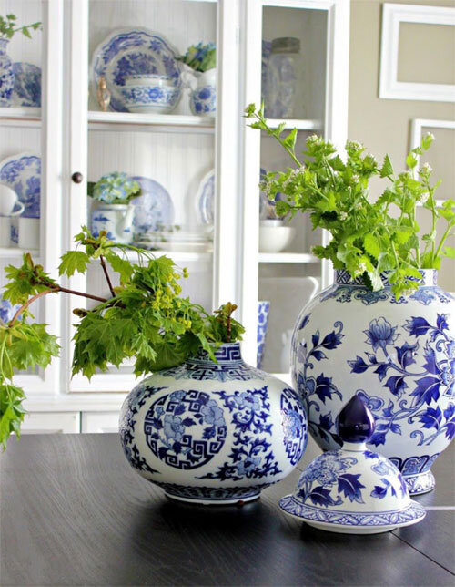 Прекрасно освежат обстановку красивые вазы, покрытые традиционным кобальтовым рисунком. Они бывают самых разнообразных размеров и форм, с ручками и без таковых, напольные и настольные.