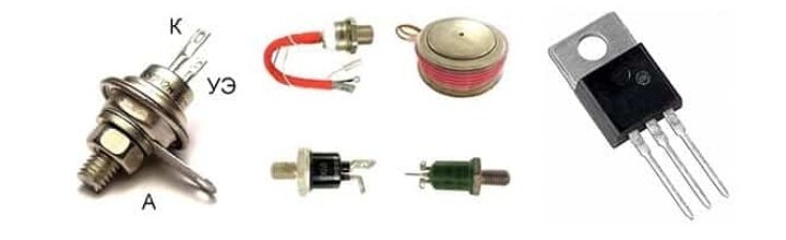Тринистор - это особый вид полупроводников, который относится к подклассу тиристоров и к классу диодов. Он представляет из себя диод, но у этого «диода» имеется также и третий вывод, называемый Управляющим Электродом (УЭ). Получается, тринистор - это диод с тремя выводами. Тринисторы также называют по виду подкласса - тиристоры, ошибки в этом нет, поэтому в этой статье я их буду называть тиристорами. Так, чтобы не возникло путаницы, давайте чуть-чуть разберемся. По проводимости и количеству выводов тиристоры делятся на два вида: тиристор диодный (или «динистор»), имеет два вывода, второй вид - тиристор триодный (или «тринистор»), имеет три вывода. Уже далее эти виды делятся на подвиды по типу проводимости, но мы не будет погружаться столь глубоко. Выглядят они как-то вот так: Принцип работы тиристора основан на принципе работы реле. Реле - это электромеханическое изделие, а тиристор - чисто электрическое. Давайте же рассмотрим принцип работы тиристора. Думаю, все катались на лифте