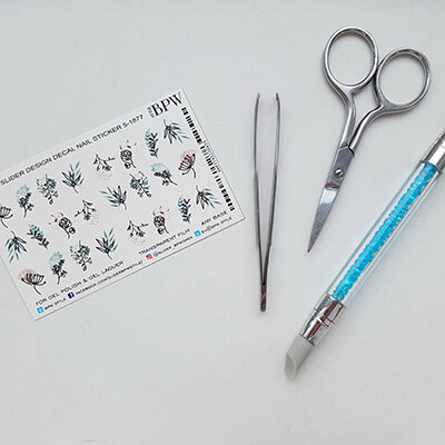 Отделив дизайн от подложки, кладем его на липкий слой топа. Силиконовой кистью выравниваем дизайн на поверхности, прижимаем уголки и отправляем в лампу еще на 20 секунд.
