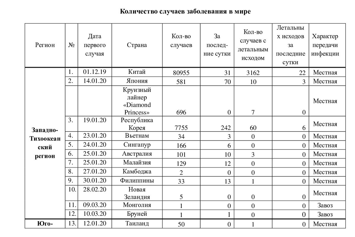 Эпидемиологическая обстановка и распространение COVID-19 в мире по состоянию на 08.00 (МСК) от 11.03.2020 г.