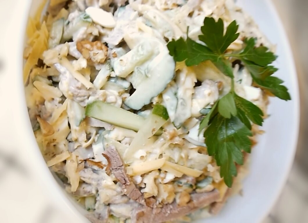 Салат с говяжьим языком - великолепная закуска на праздничный стол.