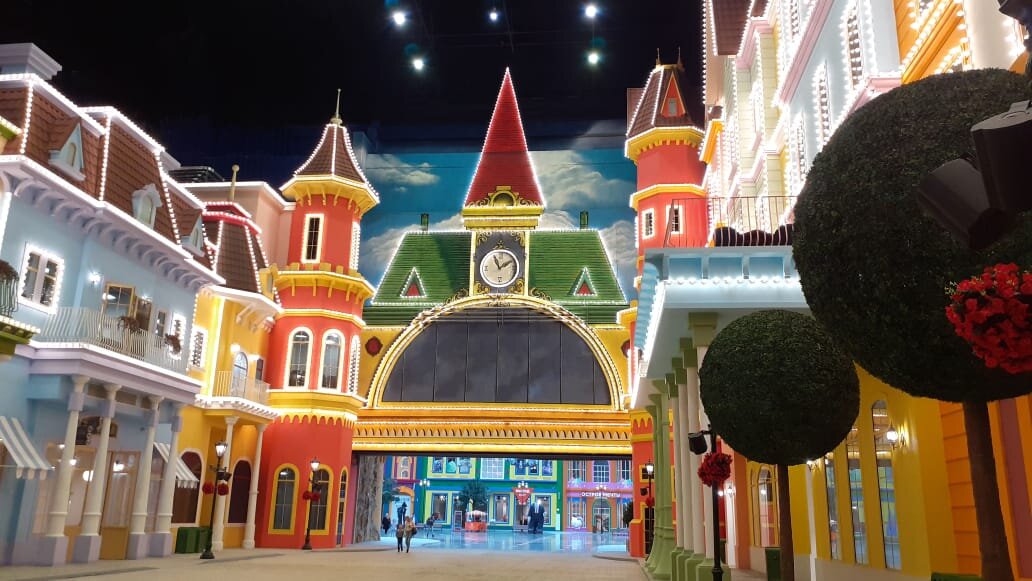 Ну а в целом я гораздо больше оценила атмосферу, а не американские горки. Ярко, празднично, красиво. Да, возможно, немного лубочно -- ну так это детский парк, ёлки-палки, а не фестиваль исторической реконструкции! Может быть, я сорока, которая кидается на всё яркое и блестящее (ранее я уже признавалась в любви к пошлым туристическим развлечениям!), но мне колоссальный заряд позитива обеспечило именно это -- огромные грибы-мухоморы, летающие драконы, снеговики и олени, замки, горгульи... короче, сказка и мультипликация.