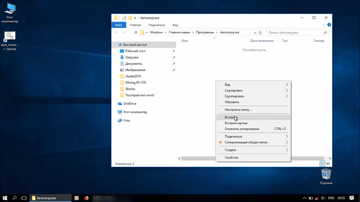 Рассмотрим три варианта с помощью которых можно настроить автозапуск какой-либо программы при включении операционной системы. На примере Windows 10. Первый вариант заключается в перемещении ярлыка программы в папку автозагрузки. Для входа в папку автозагрузки на рабочем столе необходимо нажать сочетание клавишь Win+R и в окное «Выполнить» ввести: shell:startup или пройти по следующему пути C:\ Users\ Имя_пользователя\ AppData\ Roaming\ Microsoft\ Windows\ Start Menu\ Programs\ Startup Если перенести в папку автозагрузки не ярлык, а непосредственно файл ( будь то .exe, .bat и т.д.) то маловероятно, что запуск программы после перезагрузки реализуется. Второй вариант. Реетр Windows. Рассмотрено как можно прописать в автозагрузку программу через реестр ОС Windows для этого необходимо на рабочем столе нажать сочетание клавишь Win+R и в окное «Выполнить» ввести: regedit В открывшемся окне редактора реестра следует перейти по следующему пути HKEY_CURRENT_USER\ SOFTWARE\ Microsoft\ Wind