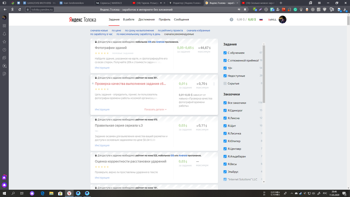 Можно ли вообще там заработать деньги на карманные расходы? Ответ очевиден можно. Но перед тем как начать зарабатывать на этом сайте, нужно повысить рейтинг на копеечных заданиях, и я бы сказал что это не просто, если вы сидите сутками за компом или за телефоном то быстро поднимите себе рейтинг, а если вы на час садитель за комп или сидите с телефона на этом сайте то тогда это вам будет трудновато. Первым дело надо обучение проходить по заданиям, ну это не быстро, и надо читать все обучение, по моему мнение это слишком нудно Если вы целеустремленный и решили все таки заработать, если это вам по силам то выполняйте задания. За задания вам платят определенную сумму, сперва там будет маленькая сумма но со временем суммы увеличатся в зависимости выполнения заданий, но хочу сказать я как то начинал, но мне не понравилось и это не мое, а вы сами решайте стоит ли вам заниматься таким заработком.