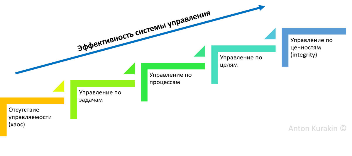 Одним из фактором, определяющих успешность деятельности организации, является способность сотрудников решать поставленные задачи и достигать поставленных целей. Не смотря на то, что некоторые подразделения могут иметь свою систему управления, обычно в компании доминирует какая-то одна. Рассмотрим эти модели. Отсутствие управляемости Некоторые авторы незаслуженно пропускают рассмотрение данной модели, не смотря на то, то она довольно-таки распространена. Особенностью данной модели заключается в том что, что она является зеркальным отражением системы управления по ценностям - высшего уровня менеджмента. А противоположности, как известно, притягиваются до степени смешения. Она очень похожа на нее, но в отличии от той - имеет практически нулевую эффективность. Суть данной модели заключается в том, что управление строится по принципу - от каждого по возможности, каждому по зарплате. То, что задача, поставленная исполнительным директором на важном совещании может быть не выполнена - вообще