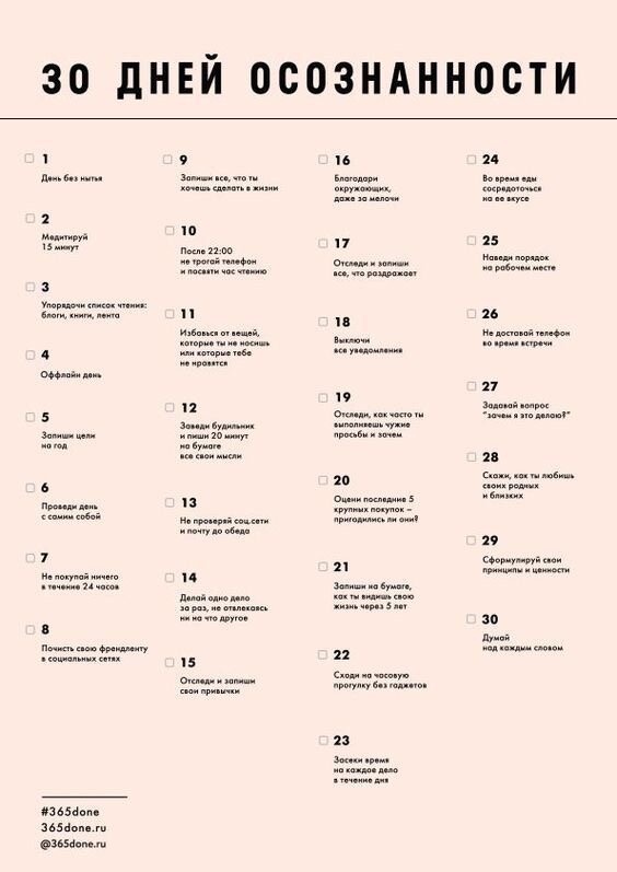 Данный чек-лист поможет вам стать ближе к самому себе. Лучше понять себя. Распечатывайте и выполняйте эти задания каждый день. Желаю успехов.