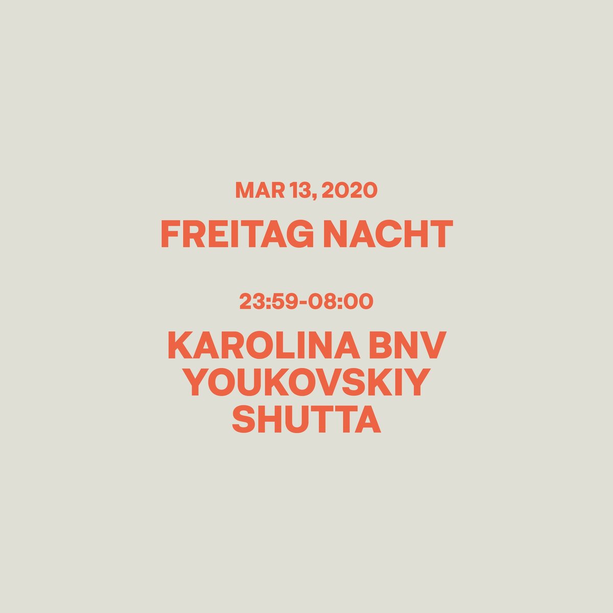 Бережно собрали для вас всю актуальную информацию о вечеринках в Питере на пятницу и субботу (13 и 14 марта), хороших выходных! 😉 Не забудьте поставить 👍🏻 материалу, подписаться на наш Телеграм-канал и написать в комментарии, где увидимся! Fraktion with Axkan / RAF25 Пятница, 13 марта 23:59 Светлановский 3, м. Удельная Стоимость: 400/500/700 21+ Стиль музыки: техно Freitag Nacht / Stackenschneider Пятница, 13 марта 23:59 Конюшенная пл., д.2, м. Невский проспект Стоимость: 100 при отметке через Facebook 18+ Стиль музыки: грув DATE / VNVNC Пятница, 13 марта 23:00 Конюшенная пл., д. 2В, м. Невский проспект Стоимость: 200 по репосту до 13/03 22:00 / 300 без внимания 18+ Стиль музыки: реп Haçienda / Union Пятница, 13 марта 22:00 Литейный 55, м. Маяковская Стоимость: вход с репостом, сделанным до 18:00 — 100 рублей. Без репоста — 200. 18+ Стиль музыки: обещают рейв :) BASSMENT vol.3 / ЛЕC VILLA Пятница, 13 марта 23:00 Казанская 7, м. Невский проспект Стоимость: 100 с репостом/20