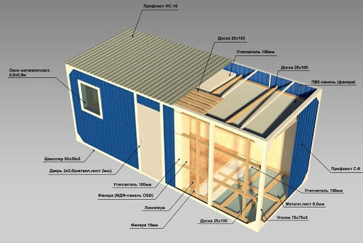 Стоит отметить что бытовки просты в производстве, возводятся быстро и материал стоит не дорого, что сказывается на себестоимости продукции.