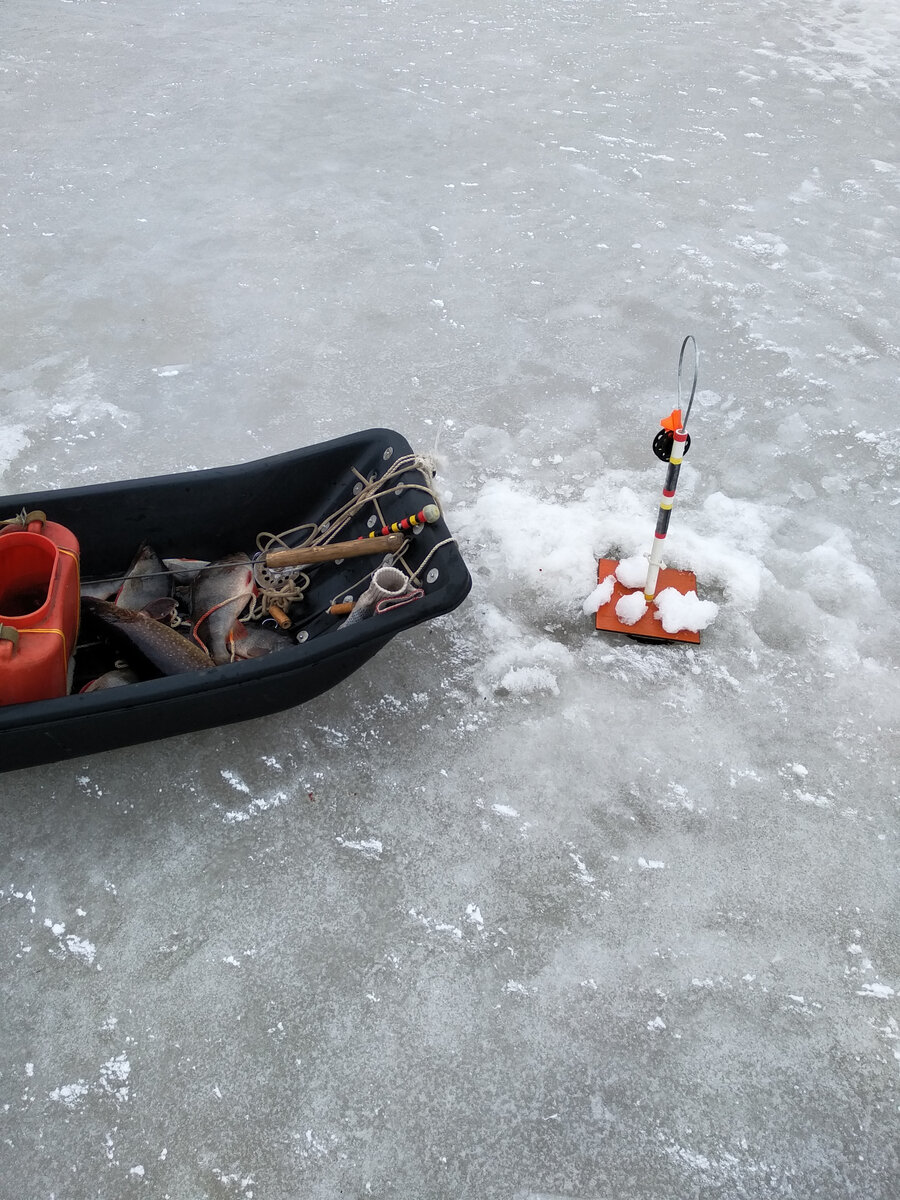 Такие высокие жерлицы не заметает снегом, их видно издалека даже ночью, лунка под ними долго не замерзает.