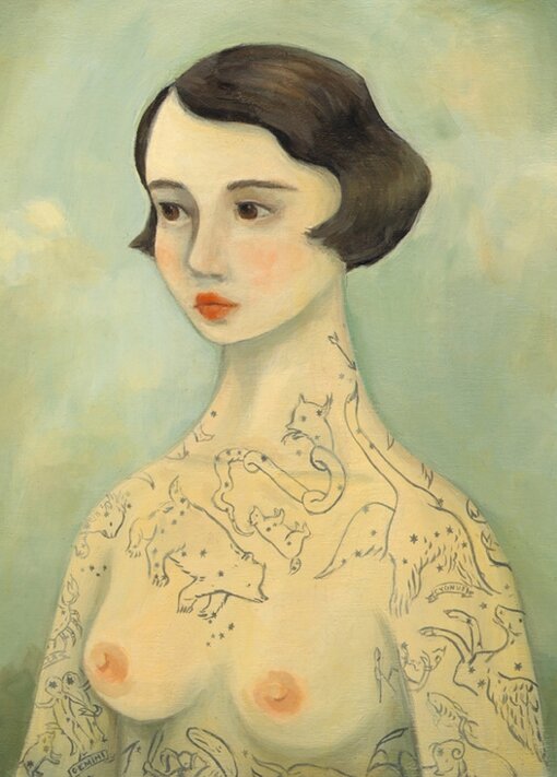 Эмили Уинфилд Мартин – художница, иллюстратор из города Портленд штата Орегон (США). Её основной специальностью является оформление тоненьких книжек для маленьких детей. Однако в своём портфолио она держит несколько работ, в которых не обошлось без татуировки. О Эмили можно сказать кратко: она – мечтатель. Именно от этого её работы приобретают неуловимое романтическое настроение. Звезда северного неба. Звезда южного неба. Рара Эйвис – татуированная леди. Флора – татуированная леди. Человек-иллюстрация.