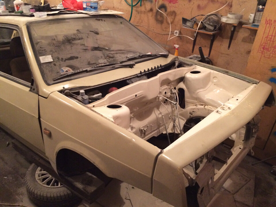ВАЗ-2108 еще сложно отнести к классике, но так как автомобили уже давно не производятся, а на дорогах находятся долгие годы, фактически путь у них один – на свалку. Однако для многих этот автомобиль стал первым, а за его рулём рождалось много планов и идей на жизнь. Многие согласятся, что первый автомобиль, особенно ВАЗ, сложно назвать просто бездушной железкой. Иначе как объяснить всё то, что делали и делают с ними парни и уже солидные мужики по всей стране? Сегодня хочу показать еще одну интересную 8-ку, на этот раз и культурного Санкт-Петербурга. Владелец автомобиля не приверженец заводского внешнего вида и идеального музейного состояния. Он предпочёл дать автомобилю интересную и яркую вторую жизнь. Чтобы можно было ездить на выставки и сходки, где данный аппарат будет собирать толпу интересующихся взглядов. Работа над автомобилем началась с полной разборки и дефектовки всего, что на нём стояло. Изначальным критерием поиска был лишь хороший кузов, так как техника и салон планиров