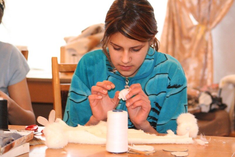 Мы с мамой работали в детском доме до переезда сюда, в лес. Занимались с ребятами рукоделием, рисованием, всем, что было доступно. Часто ходили на ярмарки, куда нас приглашали, чтобы показать ребятам, что можно зарабатывать своими руками!