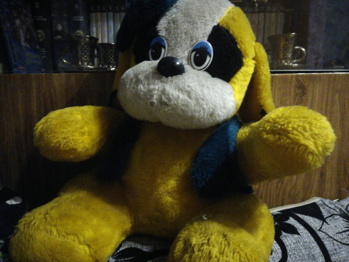 Как-то съездив в Москву, мы с семьей увидели в продаже интересные игрушки.В те времена игрушек было не так много, и выглядели они примерно одинаково, но не она. Это был забавный игрушечный пес желтого цвета, одетый в зеленую рубашку, а на голове у него находился зеленый берет.Что сразу позабавило и умилило его-это большие уши, у игрушечного пса они очень огромные. Чтобы вы больше не мучали себя представлением о том, как выглядел мой игрушечный пес, вот вам фотография, сделанная в 2020 году. Представьте себе, игрушке 21 год, а она идеально целая, шерсть на ней не испортилась, составляющие целы.Это наводит на кое-какие мысли.Мне кажется, раньше при производстве игрушек и всего остального люди уделяли больше внимания качеству, а не количеству, как сейчас. Ну а что думаете по этому поводу вы?