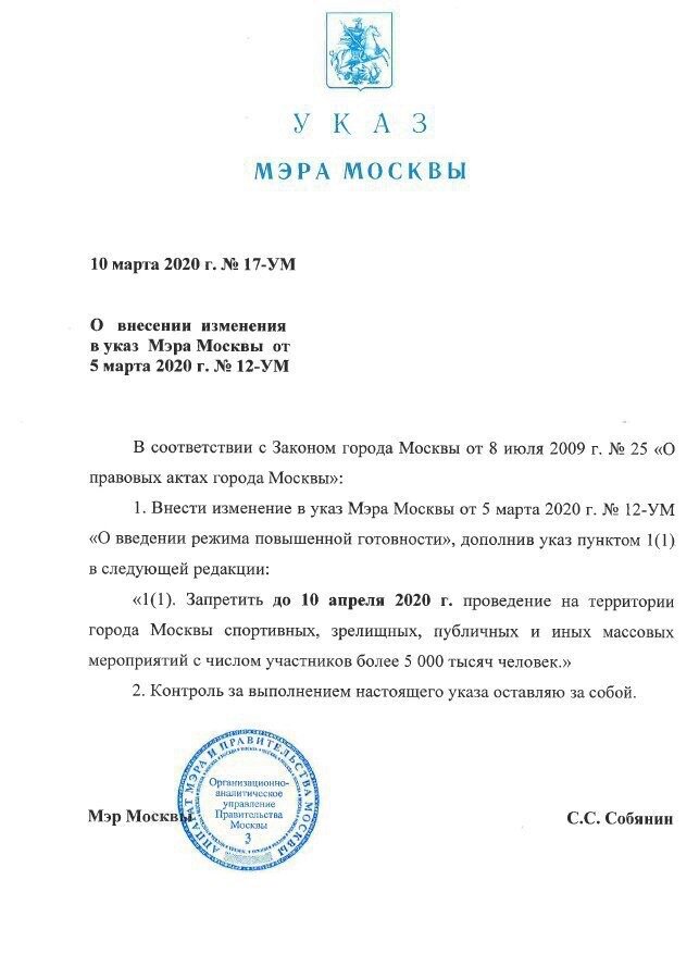 Covid-19... в последние недели коронавирус стал наиболее употребляемым словом в мире. Всем заразившимся я желаю скорейшего выздоровления, остальным - благополучно избежать заражения. И вот, 10.03.2020 года мэр Москвы Сергей Собянин издал указ о введении в городе карантина, подразумевающего запрет на проведение в городе массовых мероприятий, численностью более пяти тысяч человек. Какая-то странная полумера. Сразу в голову приходит множество вопросов. Но главный - почему именно пять тысяч?! Это как-то связано с магией? Или город готов рискнуть именно таким количеством человек? А может вирус комфортнее себя чувствует при большем скоплении человек, а вот если людей вокруг не более пяти тысяч, он теряется и уходит? Как бы то ни было, решение принято. РПЛ отреагировала молниеносно, тут же дав понять, что данный указ нарушать не собирается. 12 марта представители Лиги решили, что московские матчи периода карантина состоятся. Состоятся при зрителях. И на стадионе во время матчей будет н