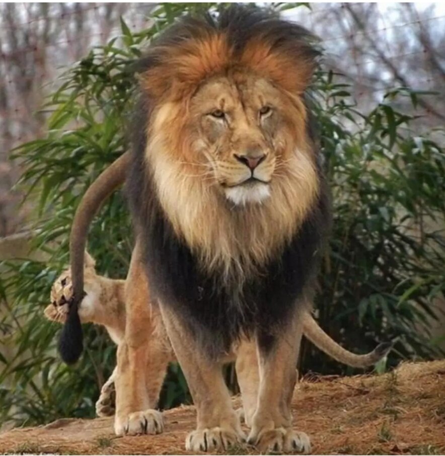 Маленький львёнок укусил отца за хвост, но в ситуацию вмешалась львица