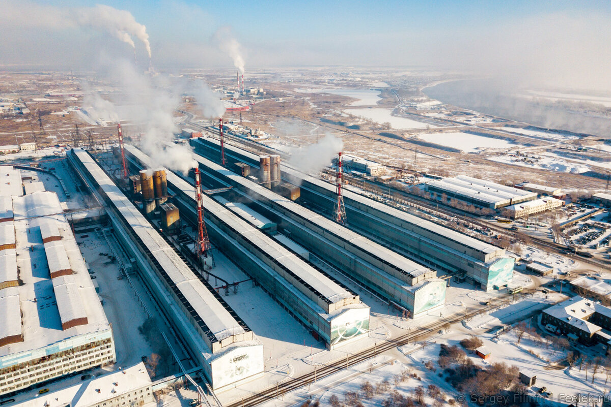 Красноярский алюминиевый завод - один из крупнейших в мире. КрАЗ производит 27 % всего производимого в России алюминия и 2 % мирового производства. Производственная мощность КрАЗа — 1 млн тонн алюминия в год. Территория завода 2,5 километра в длину и почти километр в ширину. Для сравнения - это примерно 3/4 площади исторического центра города от площади Мира до площади Революции! КрАЗ потребляет около 70 % электроэнергии производимой Красноярской ГЭС. Завод состоит из 25 электролизных корпусов, трех литейных отделений и отделения производства анодной массы. Среди стационарных источников загрязнения воздуха Красноярска, доля КрАЗа составляет практически половину по данным на 2018 год. Хотя по сравнению с советскими временами количество выбросов благодаря модернизации технологии производства и установке системы газоочистки значительно сократилось.