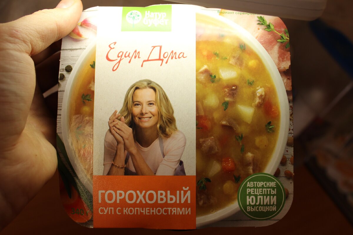 Ради интереса купил в "Магните" гороховый суп по рецепту Юлии Высоцкой за 129 рублей. Посмотрел, что внутри и попробовал на вкус