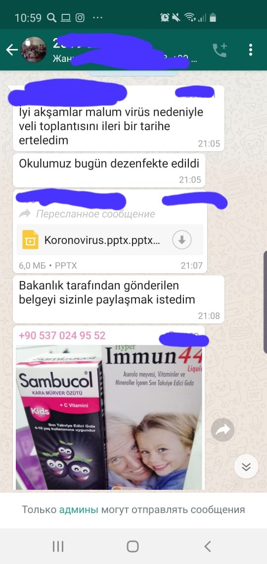 С 16 в Турции марта все школы и садики закрыты на преждевременные каникулы. Родительские чаты паникуют. Сегодня, 12 марта, в школе почти нет детей. На сегодняшний день зарегистрировано два случая заболевания в Стамбуле. Я думаю, что заболевших намного больше и уже давно. Просто когда ты болеешь, врач выписывает противовирусное или антибиотик, и отправляет лечиться домой. Никто не берет никакие анализы. Лечишься дома, да и все. Мой сын болел в прошлом месяце, высокая температура, кашель, красное горло и насморк. 3 дня температуры и он здоров. Кто знает, какой вирус это был? И все дети в классе так переболели. Все школы были обработаны дезинфекторами, детские площадки, автобусы и остановки (хотя в Анталии официально ни одного заболевшего нет). В родительском чате учитель прислала рекомендации по покупке противовирусных препаратов и витамин. Так же рекомендуют не гулять на детских площадках. В универмагах и магазинах есть еда. Все заведения работают в обычном режиме. Я думаю, Турция р